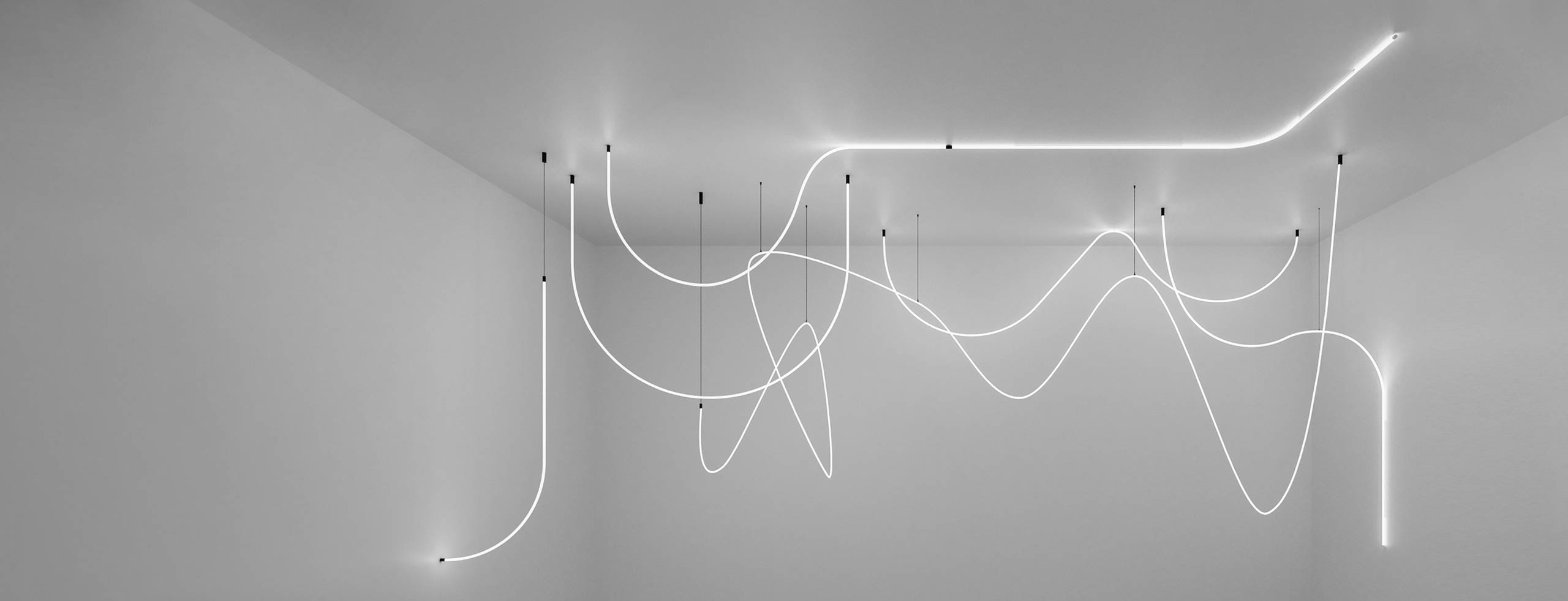 Flex Tube comes with a variety of accessories, enabling installation on walls and ceilings in both pendant and surface-mounted configurations.