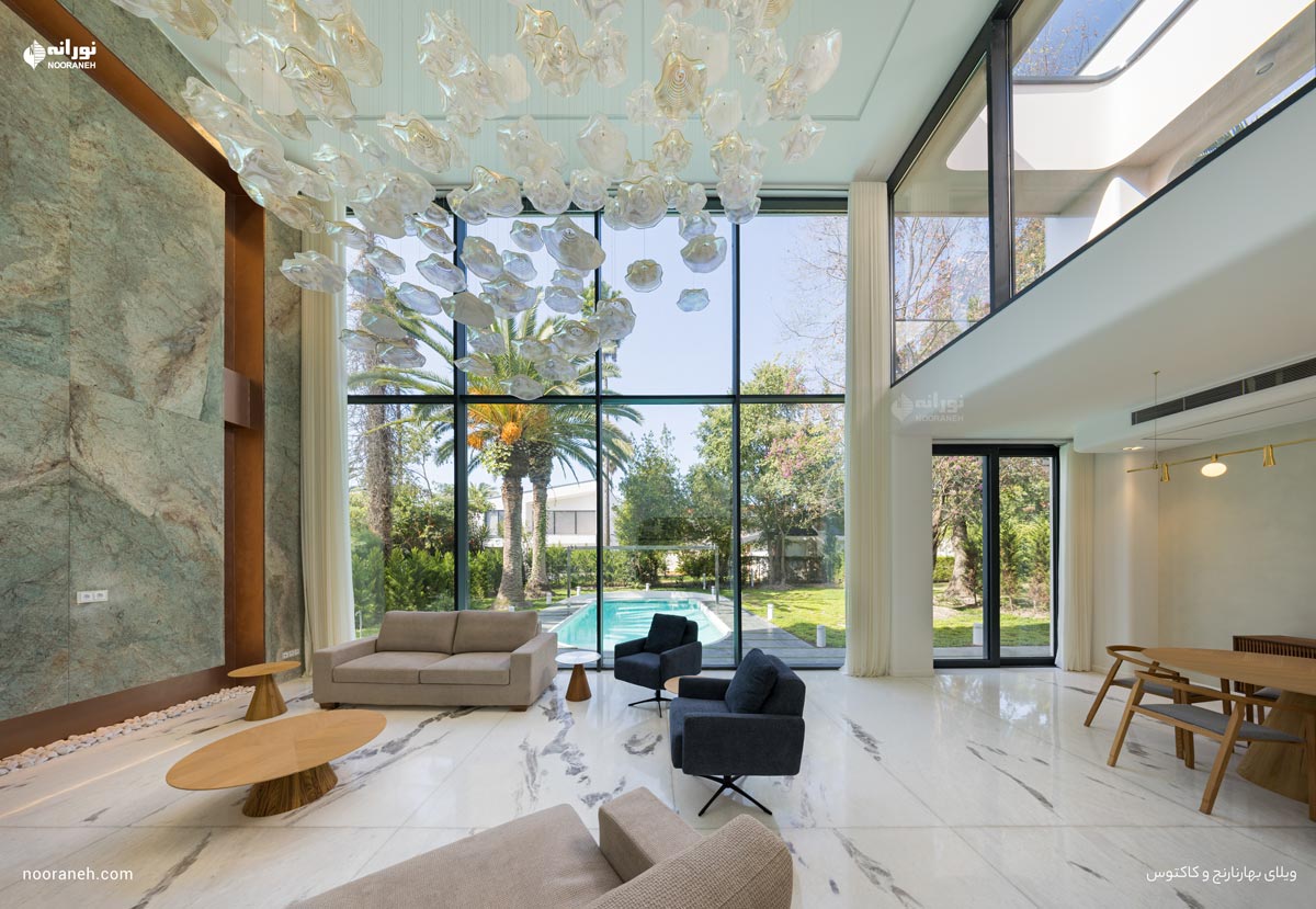 Bahar Narenj & Cactus Villa, located in Khaneh Darya in Mazandaran, was designed by IN2 ARCHITECTS under the supervision of Engineer Emam-Jomeh and Engineer Farrokh-Mal, following a modern approach that harmonizes with the overall architectural context.