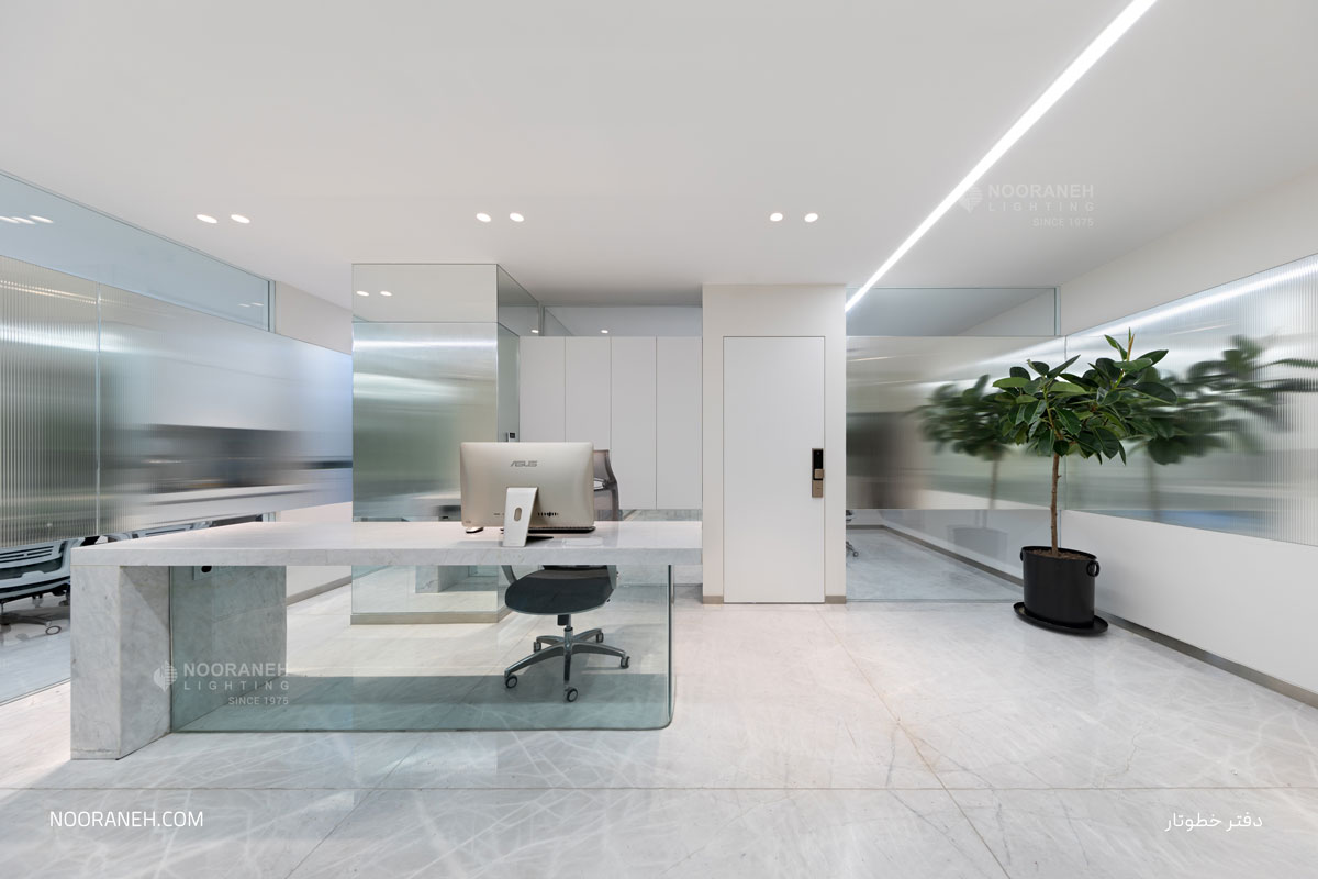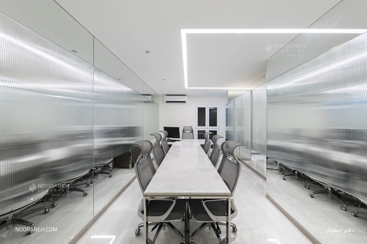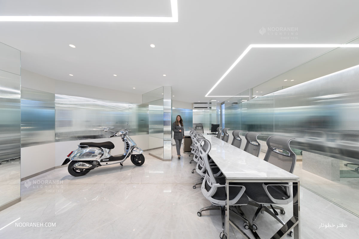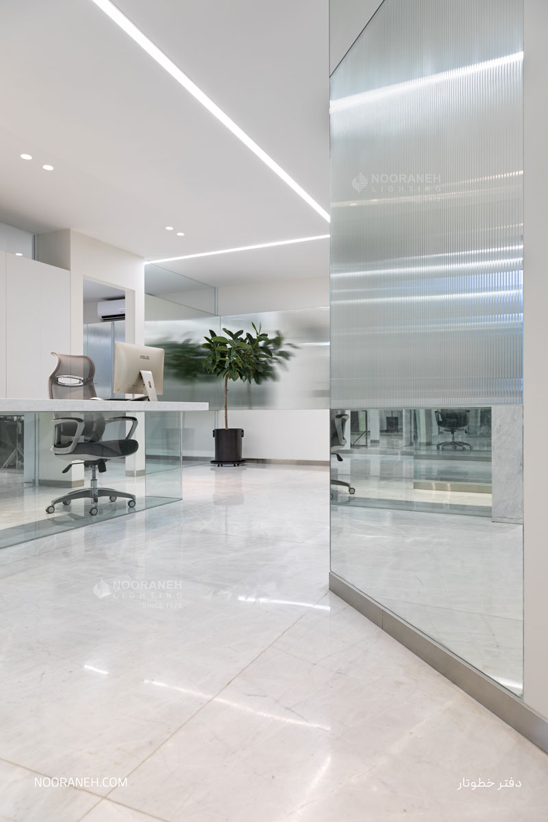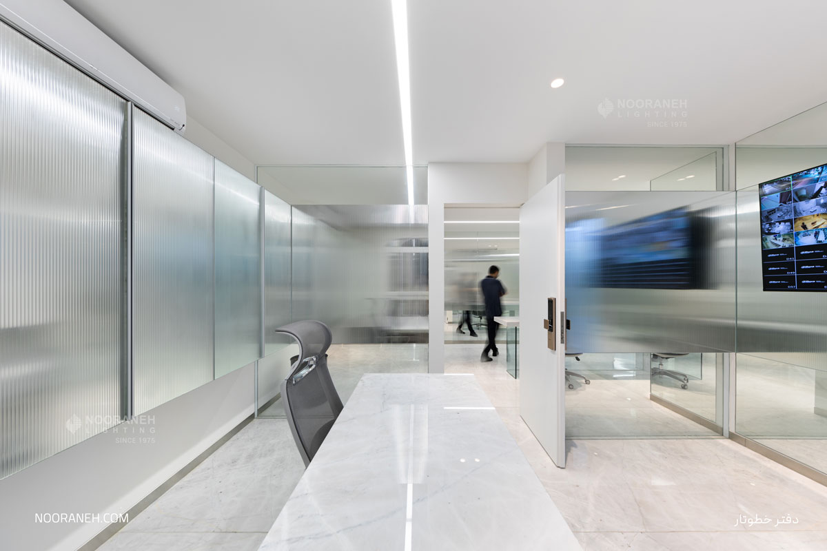 In the Khotootar office, linear luminaires have been used for general lighting, and Trimo dark light luminaires for supplementary lighting.