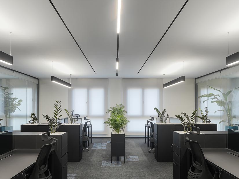For the lighting design, double-sided linear luminaires (Line Up/Down) were used to provide task lighting for workstations. These fixtures deliver uniform direct and indirect light distribution, minimizing unwanted shadows and creating suitable lighting conditions for daily activities. In addition, the use of the “Multi Track system” as a flexible solution allows magnetic luminaires to be easily repositioned and adjusted in response to changes in spatial layout or varying functional requirements.