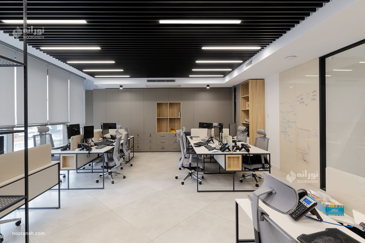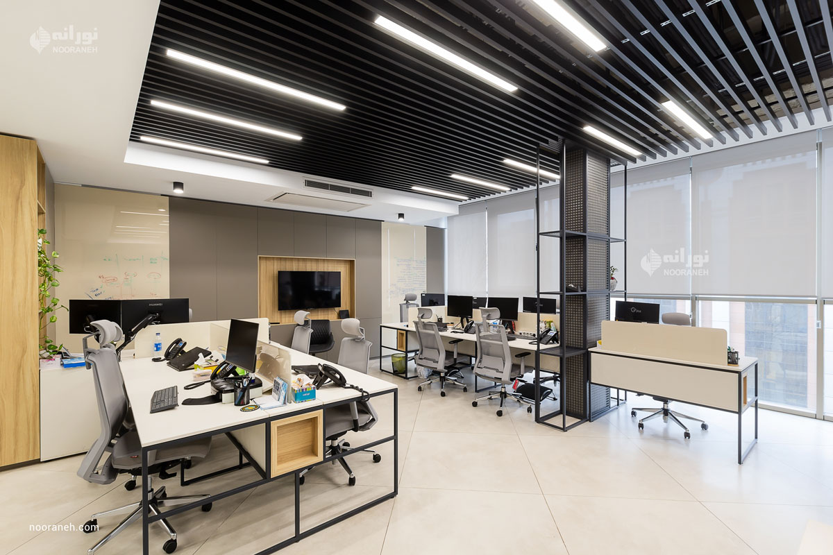 Zarrin Group began its operations in 1989, specializing in the production of plastic feeding utensils for children and other hygienic and plastic necessities. In 2000, the company expanded its activities into the cellulose industry by producing baby diapers. For the lighting of the administrative office of Zarrin Roya, linear lights have been utilized within louvers, contributing not only to general lighting but also enhancing the aesthetic appeal of the space. Additionally, Nooraneh’s Eco Plus lights have been used in the ceiling to provide complementary lighting for the area.