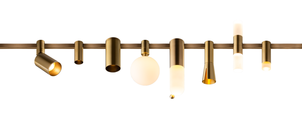 Glory is an innovative lighting track system, unveiled by Nooraneh at abp expo exhibition of 2023. Glory is made of brass in colors of pure brass, rose gold, and black. It can be installed in surface mounted and pendant modes on any ceiling.